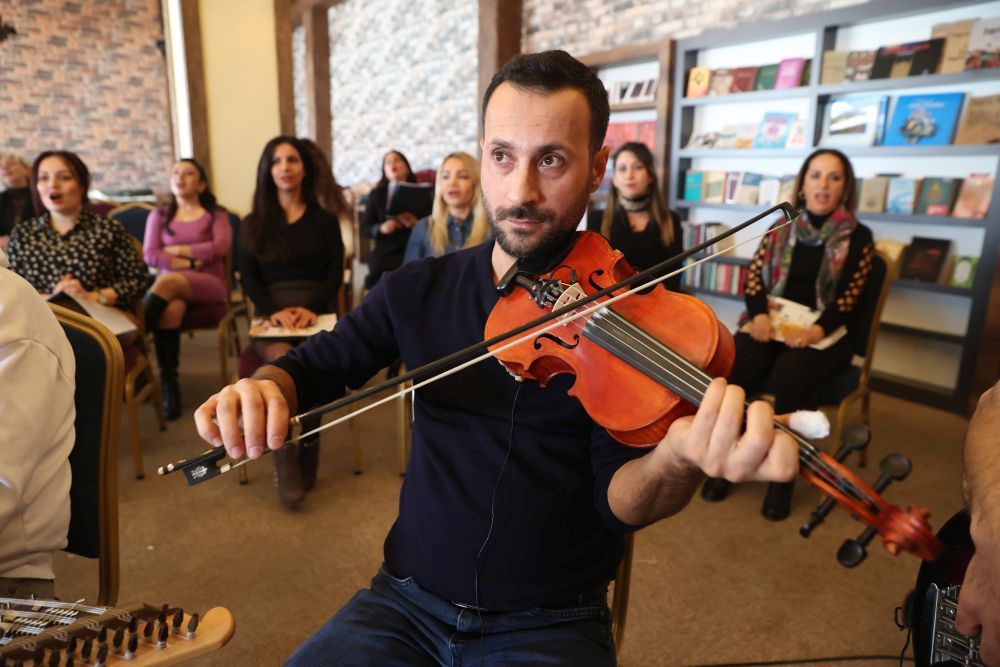 Proje kapsamında kurulan müzik atölyesinde farklı branşlarda görev yapan 40 öğretmen saz, kanun, ney gibi çeşitli enstrümanlar çalıyor, koro ve solo şarkılar seslendiriyor.