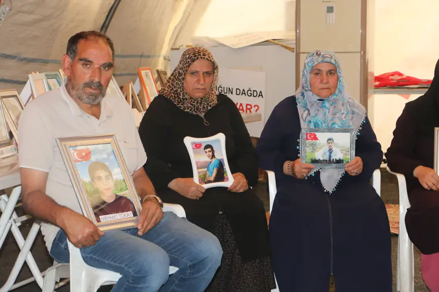 “Yaklaşık 5 seneye yakın bu çadırda nöbet tutuyoruz. Çocuklarımız geri dönünceye kadar bu çadıra gelmeye devam edeceğiz. Benim oğlumu versinler. Aziz oğlum, her neredeysen seni çok özledim. Orası senin yerin değil, dağda kara taşa mahkum oldun. Senin gençliğini ve hayallerini çaldılar. Eve dön oğlum. 2016 senesinde çocuğum küçük yaşta dükkana bakarken kaçırıldı. Sabah kalktıktan sonra bir daha oğlumu göremedim.”