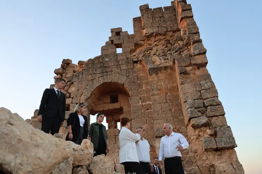 Vali Zorluoğlu, incelemelerin ardından beraberindeki heyetle tarihi Zerzevan Kalesi'nde hatıra fotoğrafı çektirdi.
