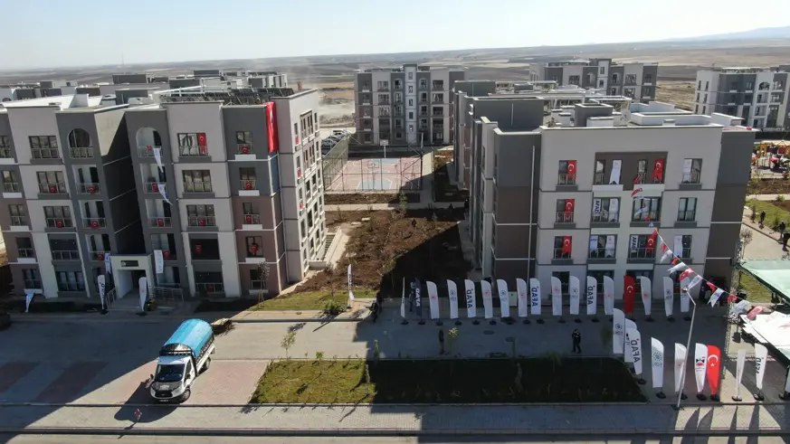 “Asrın Felaketi” olarak adlandırılan 6 Şubat 2023 Kahramanmaraş merkezli depremlerden etkilenen Hatay, Malatya, Adıyaman, Gaziantep, Diyarbakır, Elazığ, Osmaniye, Şanlıurfa, Adana ve Kilis’te yapımı tamamlanan 29 bin 311 deprem konutunun anahtar teslim töreni Cumhurbaşkanı Recep Tayyip Erdoğan’ın katılımıyla gerçekleştirildi.