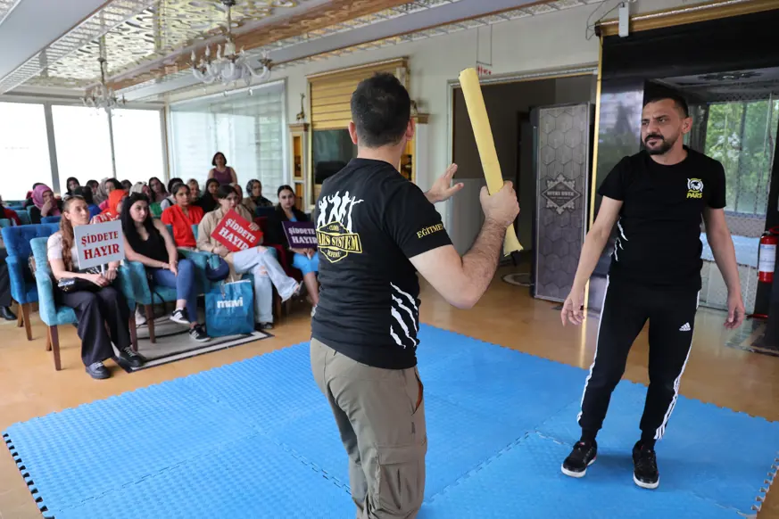 Eğitmen Mücahit Yılmaz, Sıtkı Usta işletmecilerinden Ahmet Altunbay ile beraber kadına yönelik şiddete farkındalık oluşturabilmek için bu anlamlı günde seminer düzenlediklerini söyledi. Burada genç, yaşlı ve işitme engelli olan hanımların olduğunu belirten Yılmaz, onlara yararlı olabilmek için sokakta kıyafet nasıl olması gerektiğini, kapıda alışverişin nasıl yapılması gerektiğini, sağlıklı bir antrenmanın nasıl yapılması, şiddetle, tacizle karşılaştıklarında bilinçli bir şekilde nasıl hareket etmeleri gerektiğini anlattıklarını ifade etti.