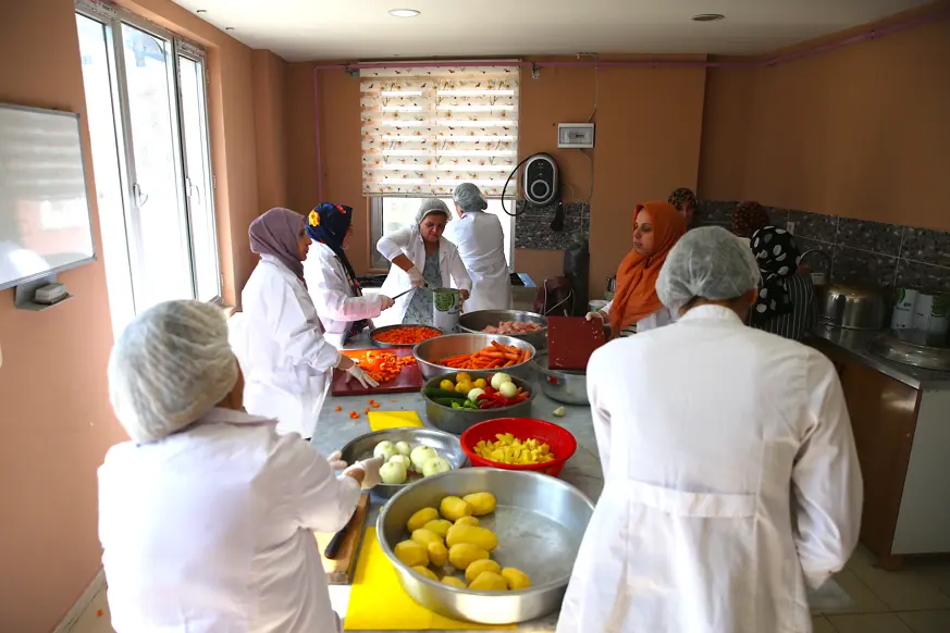 Çalışmaya gönüllü katkı sunan ev kadınlarından Kudret Şengül de her gün evindeki işleri bitirdikten sonra kooperatifin mutfağına yemek yapmak için geldiğinden bahsetti.