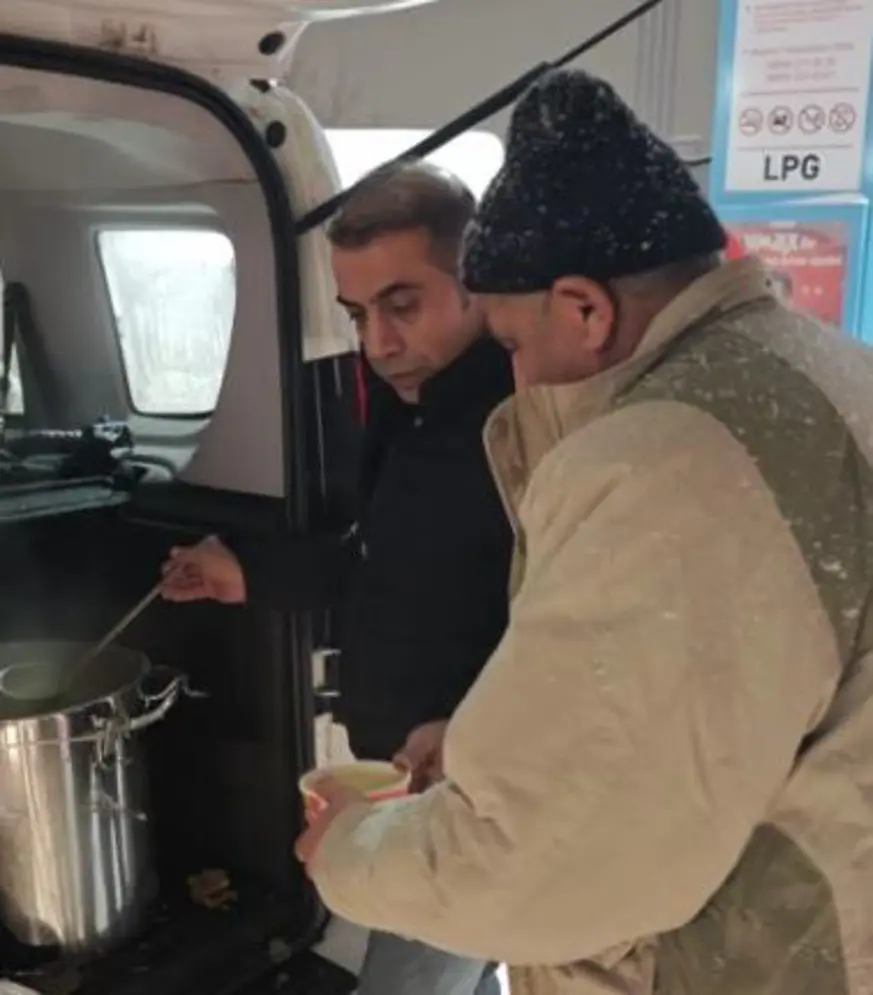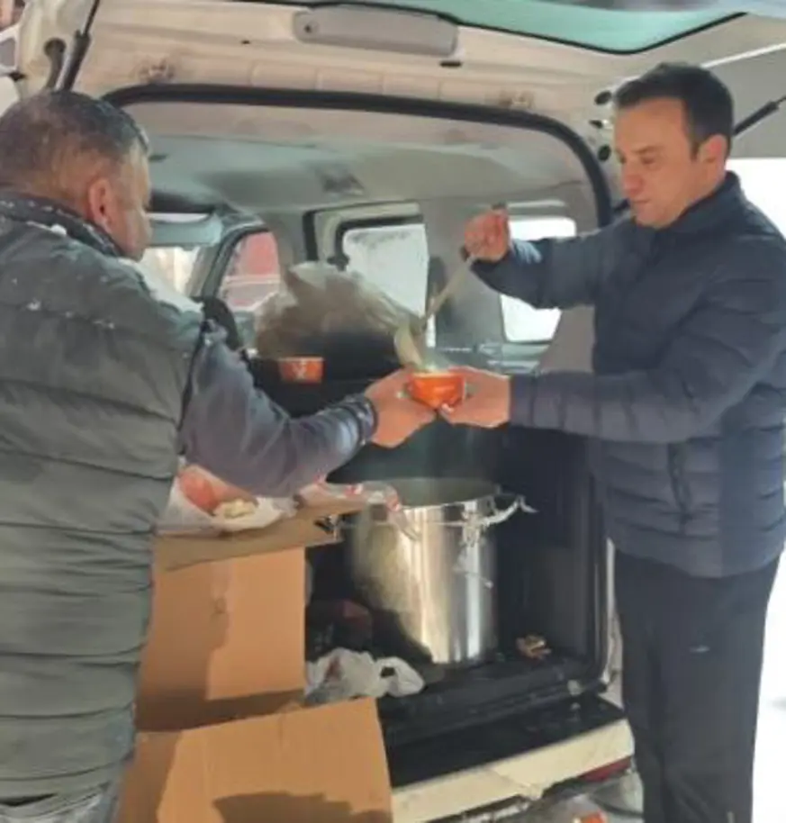 Aşevi ekiplerince hazırlanan bin kişilik sıcak çorba, kar ve tipi nedeniyle yolda kalan otobüs, kamyon ve dolmuş sürücüleri ile yolculara dağıtıldı. Soğuk hava şartlarında yapılan ikram, vatandaşlara moral oldu.
