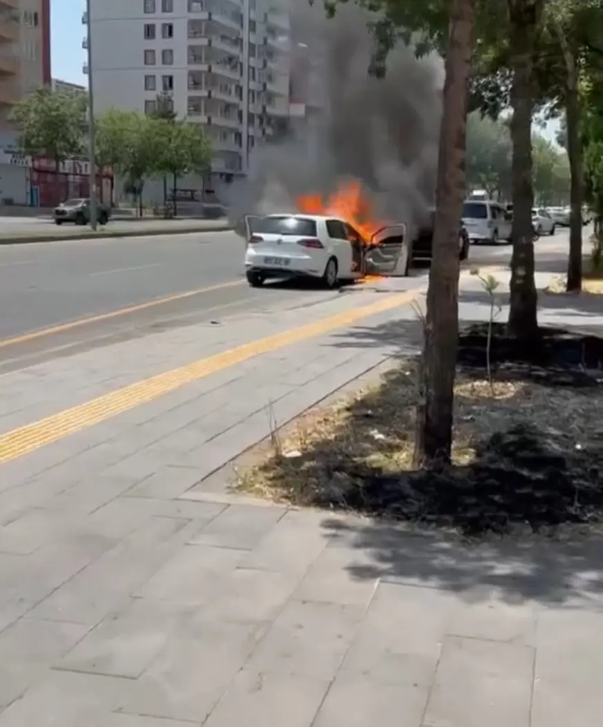 Peyas Mahallesi Selahattin Eyyubi Bulvarı'nda park halindeki 33 DJZ 55 plakalı otomobil, henüz bilinmeyen bir nedenle yandı.