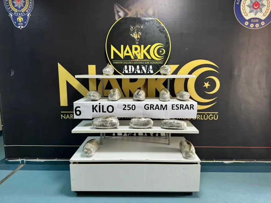Adana Emniyet Müdürlüğü Narkotik Suçlarla Mücadele Şube Müdürlüğü ekipleri, Tarsus-Adana-Gaziantep (TAG) Otoyolu'nda şüpheli bir hafif ticari aracı durdurdu. Araçta bulunan Mehmet Can G. (40) ve sevgilisi Sevda Ç. (20) araçtan indirildi. Dedektör köpeği ‘Tinga' araçta yaptığı aramada yedek lastiğe tepki verdi. Bunun üzerine narkotik polisleri, kontrol ettikleri lastik içinde 6 kilo 250 gram esrar ele geçirdi. Gözaltına alınan çift emniyete götürüldü.