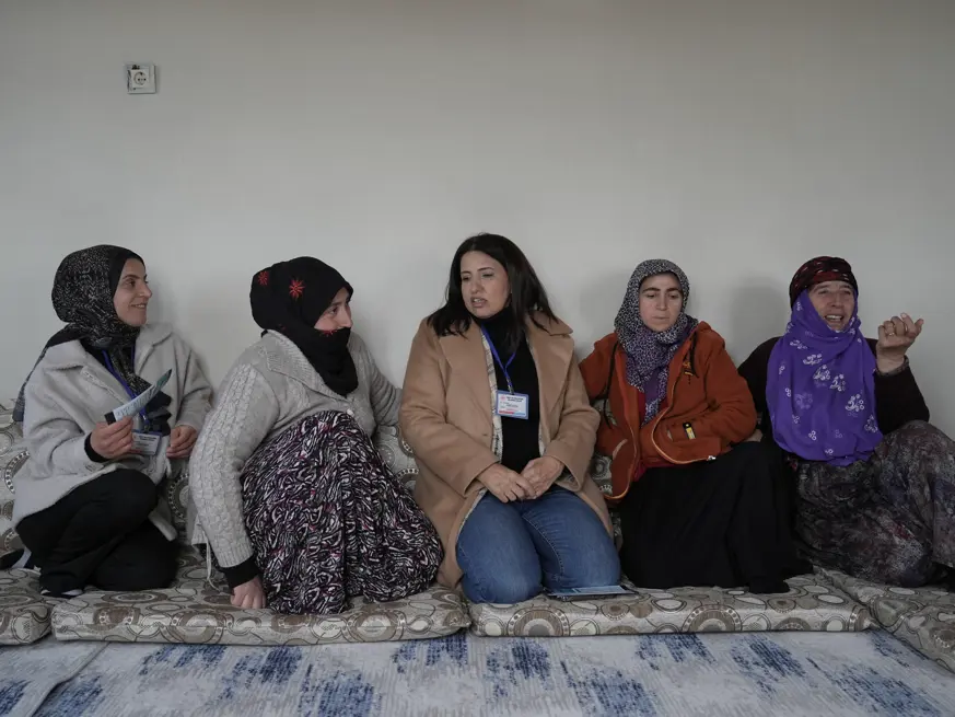 Diyarbakır'da hayata geçirilen projeyle kırsal mahalleleri gezen kadınlar, çocuk yaşta evliliklerin önüne geçmek için bilgilendirme çalışması yürütüyor.