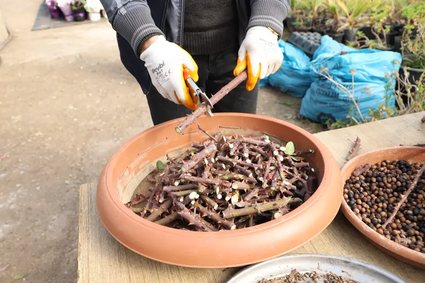 Elde edilen gül çeliklerinin köklendirilmesini sağlamak için üretim tavalarına alan ekipler, yaklaşık 6 ay sonra köklenen farklı türlerdeki 10 bin adet gülü kentin farklı noktalarında değerlendirmek üzere saksıya alacak.
