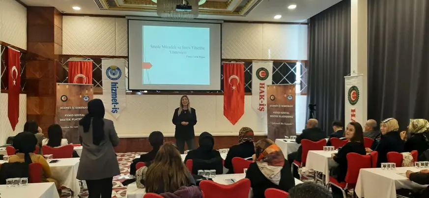 Hizmet İş Sendikası Genel Merkez Kadın Komitesi Başkanı Hatice Ayhan ve Kadın Komitesi yöneticileri, Hak İş Diyarbakır İl Temsilcisi Mehmet Aküzüm, Öz Gıda İş Sendikası Diyarbakır Şube Başkanı Hidayet Meşe, Hizmet İş Sendikası Diyarbakır Şube Başkanı Ercan Kahraman'ın da takip ettiği programda sendikanın Psiko Sosyal Platformu'na dağlı psikolojik destek uzmanları işten çıkarılanlarla bir araya geldi.