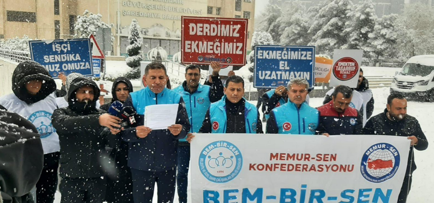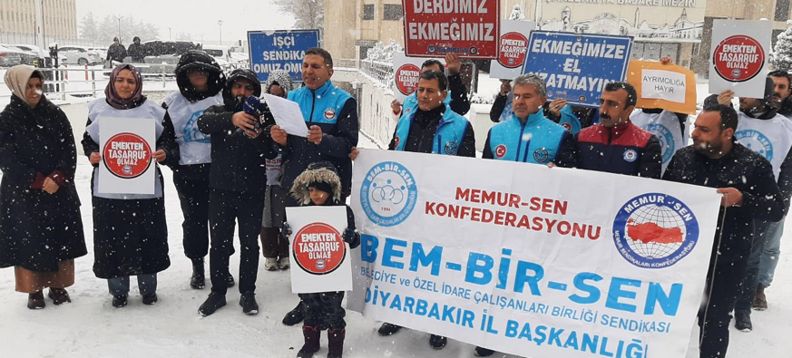 DİYARBAKIR(SÖZ)-Yerel seçim sonrası Diyarbakır’daki Belediyeler de işçen çıkarmalar devam ederken son olarak merkez Kayapınar İlçesinde 90, Yenişehir ilçe belediyesinden de 12 olmak üzere 102 sözleşmeli personelin görevlerine son verilmesiyle yaşanan mağduriyetle ilgili Memur Sen Diyarbakır İl Başkanı Ramazan Tekdemir, basın açıklamasında bulundu.