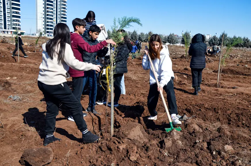 Namık Kemal Mesleki Teknik ve Anadolu Lisesi Halkla İlişkiler Bölümü öğrencileri ile bir özel okulda eğitim gören öğrenciler, Kayapınar ilçesi Fırat Bulvarı üzerinde yer alan Kent 2 Ormanlık Alanına 135 adet İran çamı ile mavi selvi fidanı dikti.