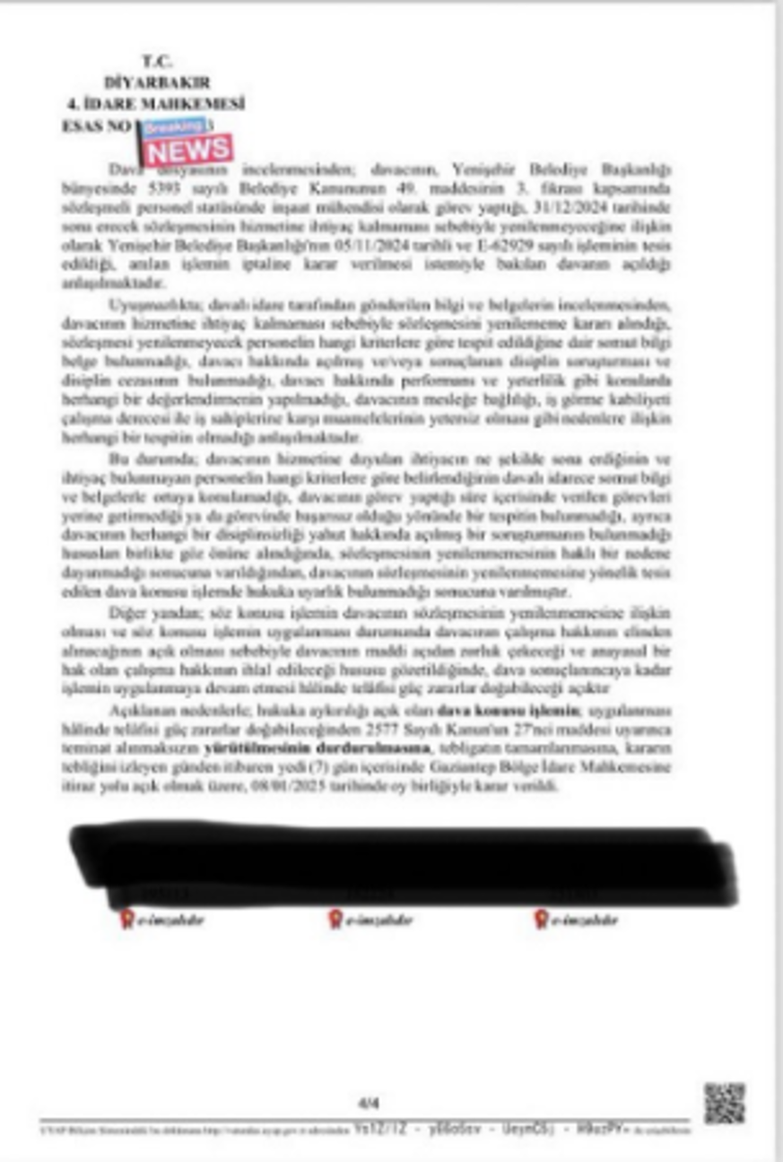 Mahkeme, belediye yönetimlerince alınan kararların hukuka aykırı olduğunu ve telafisi mümkün olmayan zararlar doğuracağını belirterek yürütmenin durdurulmasına karar verdi.