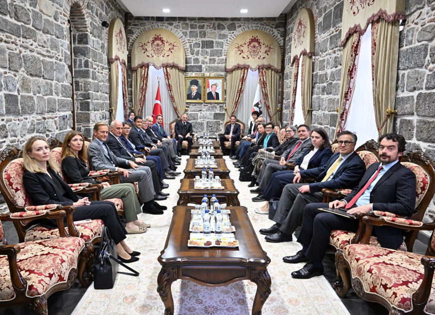 Basına kapalı gerçekleşen ziyarette, AB ile yerel düzeyde iş birliği olanakları, ortak projeler ile Diyarbakır'ın ekonomik, kültürel ve turizm alanındaki gelişim imkanları üzerine değerlendirmelerde bulunuldu.