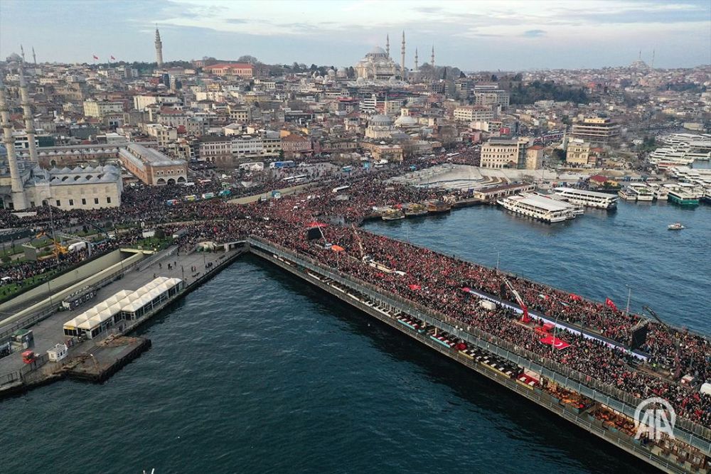 Ayasofya-i Kebir Cami-i Şerifi, Eminönü Yeni Camii, Sultanahmet Camii ve Süleymaniye Cami'sinden, sabah namazının kılınmasının ardından yürüyen katılımcılar, Galata Köprüsü ile Eminönü Meydanı'nda toplandı.
