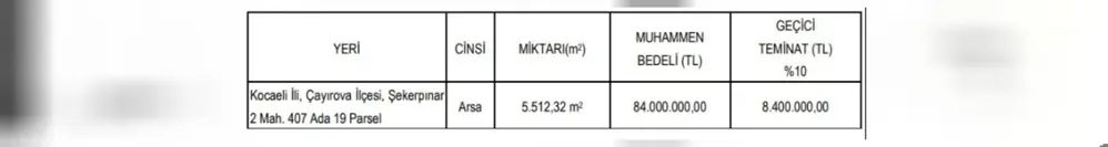 Sakarya ve Balıkesir illerinde bulunan dört değerli arsa için düzenlenecek olan ihaleler yaklaşıyor. Balıkesir’deki arsaların tahmini değerleri 47,2 milyon TL’den başlayıp 69,5 milyon TL’ye kadar ulaşırken, Sakarya’daki arsanın tahmini değeri ise 84 milyon TL olarak belirlendi.
