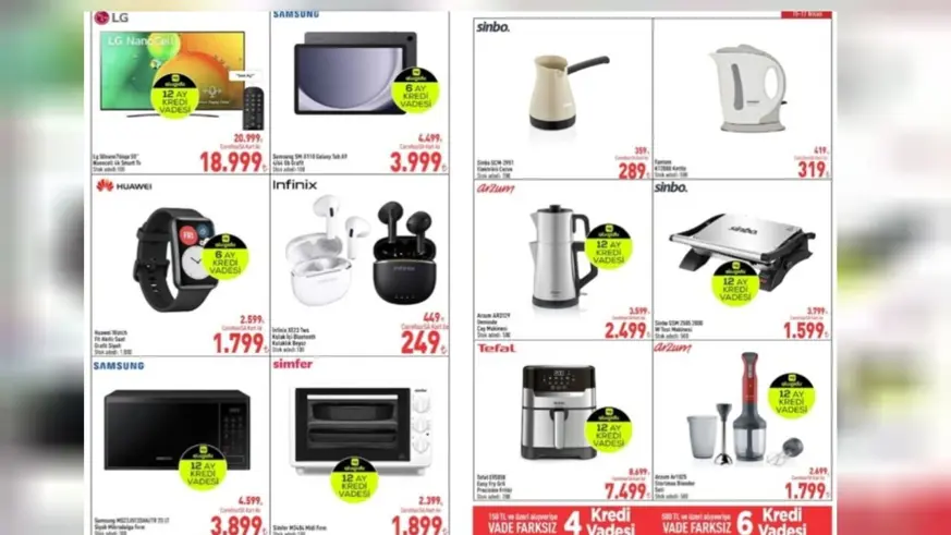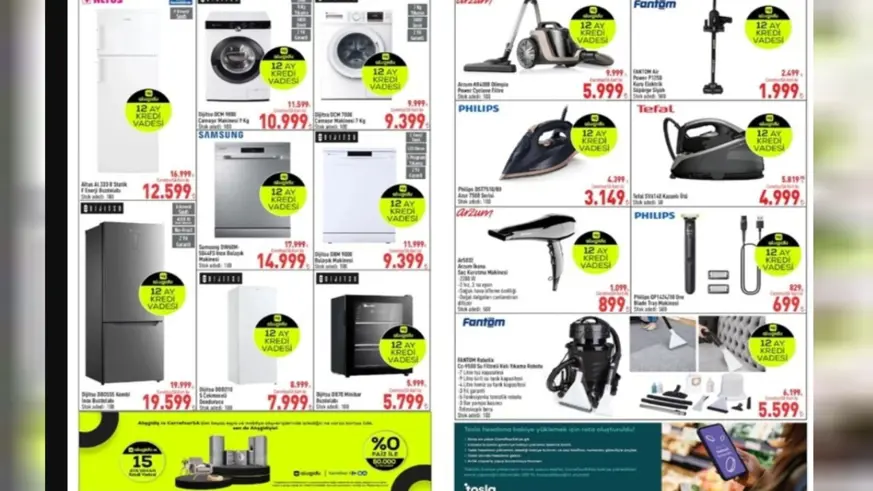 İndirimli fiyatlarla sunulan ürünler arasında Altus buzdolabı 12.599 TL, Dijitsu bulaşık makinesi 9.399 TL, Fantom elektrikli süpürge 1.999 TL, Philips ütü 3.149 TL, Tefal ütü 4.999 TL gibi cazip fiyatlarla dikkat çekiyor.
