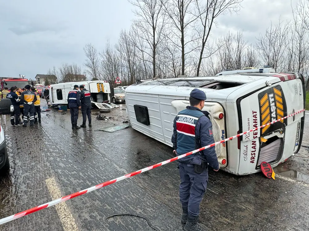Kurtköy köyü mevkiinde Necmi G. (67) idaresindeki 74 M 0203 plakalı işçileri taşıyan minibüs ile aynı yönde giden Erol A. (50) yönetimindeki 74 M 0469 plakalı işçi servisi çarpıştı. Çarpışmanın etkisiyle işçi servisleri devrildi.