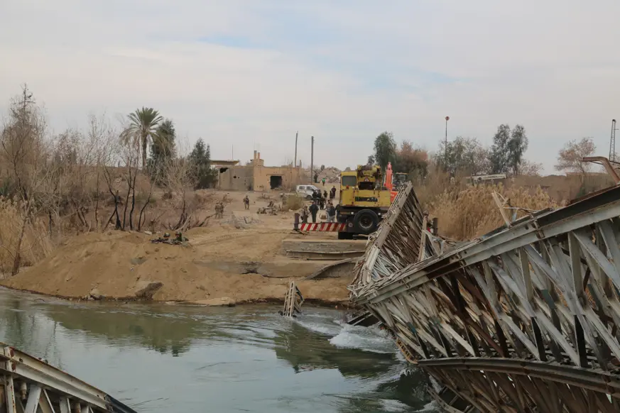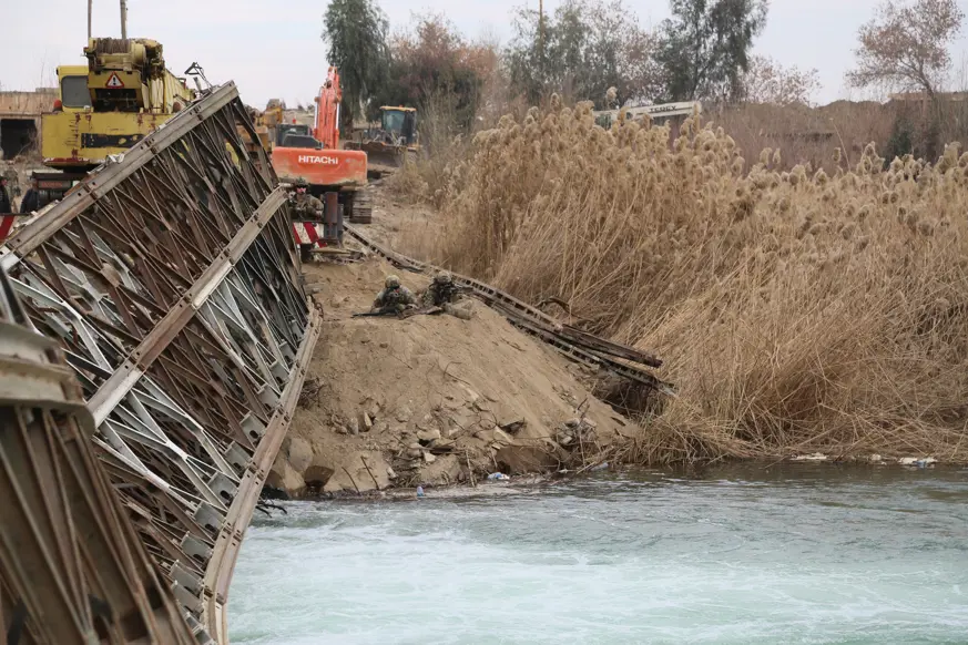 Deyrizor Valiliği, terör örgütü PKK/YPG'nin yıktığı, kentin iki yakasını birbirine bağlayan köprüyü sivillerin kullanabilmesi için onarmaya başladı.