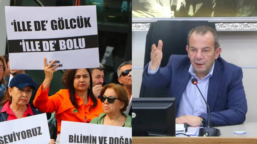 Aralarında Bolu Belediye Başkanı Tanju Özcan’ın eşi Meral Özcan’ın da olduğu Gölcük Platformu üyeleri, toplantı öncesinde belediyeyi protesto etti.