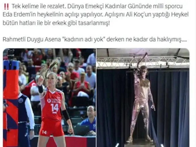 Voleybol Milli Takım Kaptanı ve Fenerbahçe Volaybol Takımı oyuncusu Eda Erdem’in uluslararası medyada dahi çok konuşulan fotoğrafı Ali Koç tarafından 8 Mart Emekçi Kadınlar Günü’nde heykeli yapıldı. Sosyal medya kullanıcıları tarafından Efsane Kaptan Eda Erdem için yapılan ve tamamen erkek bedeni gibi görünen heykel, “8 Mart’ın anlamına hitap etmiyor, kadın bu günde dahi bir erkeğe benzemek zorunda, güçlü kadın olamaz mı, sadece erkek gibi kadın mı olunur güçlü olmak için” gibi linçlere maruz kaldı.