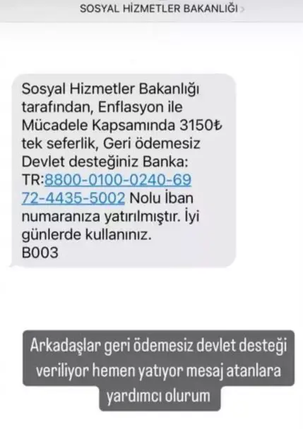 Son zamanlarda başta sosyal medya olmak üzere, cep telefonlarına gelen bazı mesajlar vatandaşların dolandırıcıların tuzağına düşmesine neden oluyor. 31 Mart Mahalli İdareler Genel Seçimleri'nden sonra dolandırıcılar enflasyon ve promosyon gibi konularla emeklileri dolandırmaya yönelik çeşitli yöntemlere başvuruyor. Aile ve Sosyal Hizmetler Bakanlığı'nın ismi ile emeklilere 'enflasyonla mücadele' kapsamında 'geri ödemesiz devlet desteği' gibi konular kullanılarak dolandırıcılık mesajları atılıyor.