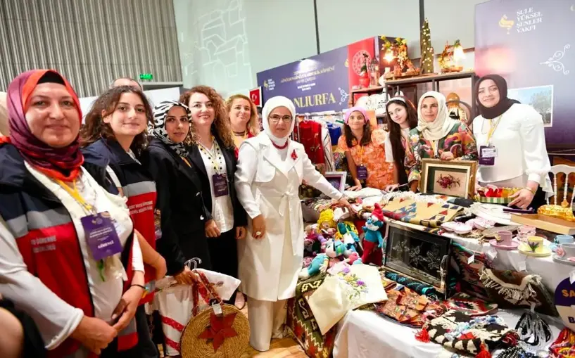 Emine Erdoğan, bugün açılışı yapılan Hayır Çarşısı'nda, bölgede faaliyet gösteren merkezlerin yanı sıra Şule Yüksel Şenler Vakfının tasarım ve dikiş atölyelerinde üretilen ürünlerin de yer aldığını hatırlatarak, ayrıca 11 ilin el sanatları ve gastronomik zenginliklerinin de sergilendiğini kaydetti.