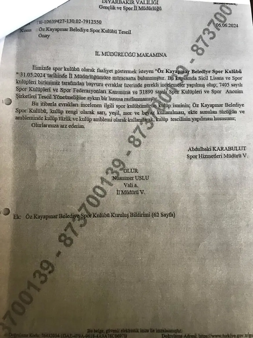 Mayıs ayında Öz Kayapınar Belediyespor ismiyle yeni bir spor kulübü kuruldu. 1 ay sonra tescili yapılan kulübe belediye meclis kararıyla 5 milyon TL kaynak aktarıldı. Kayapınar Belediyespor adını ve uzun yıllardır belediye bünyesinde faal olan kulübün dışında, bu isimle yeni bir kulüp kurulmasi kafa karıştırdı.
