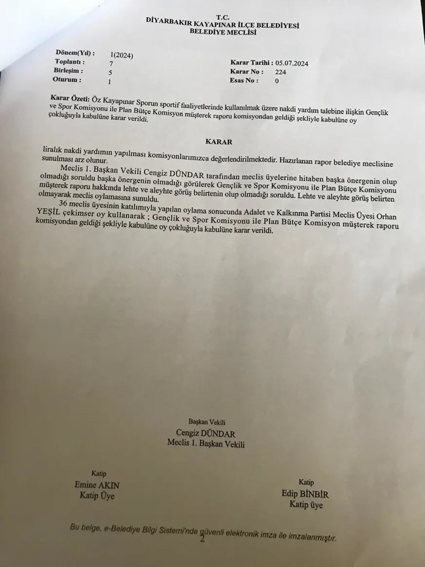 Mevut kulüp var iken sıfırdan yeni bir kulübün kurulmasındaki gayenin ne olduğu bilinmezken, Belediye Meclisinin ilçe sınırları içerisindeki amatör spor faaliyetlerine ayırdığı bütçenin ise 550 bin lira olarak, belirlenmesi, dikkat çekti. Yerel seçimler sonrasında kurulan Öz Kayapınar Belediyespor’un kulüp başkanlığının ise Belediye Meclis Üyesi Kıyasettin Kurt yürütüyor.