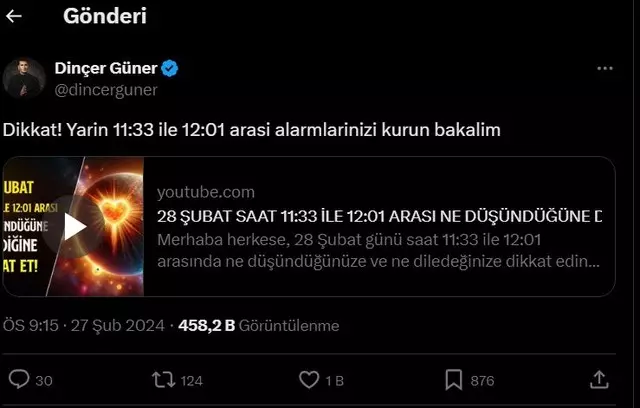 Ünlü astrolog Dinçer Güner, sosyal medyada büyük yankı uyandıran bir uyarıda bulundu. Güner, 28 Şubat günü için gökyüzündeki olayları ve etkilerini açıkladığı paylaşımında dikkat çekici bir detayı takipçileriyle paylaştı.