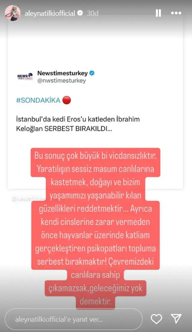 Bu kararın ardından ünlü şarkıcı Aleyna Tilki, konuyla ilgili sosyal medya hesabından bir açıklama yaptı ve verilen cezaya tepki gösterdi. Tilki, "Bu sonuç çok büyük bir vicdansızlıktır" ifadelerini kullanarak adaletin sağlanamadığına dikkat çekti.