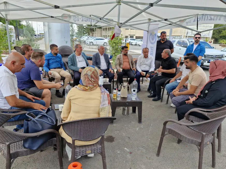Hizmet İş Sendikası öncülüğünde kurulan çadırda oturma eylemi yapan mağdur işçiler, sıcak havaya rağmen hak arama mücadelesini sürdürüyor. AK Partili Çermik Belediye Başkanı Şehmus Karamehmetoğlu, Eğil Belediye Başkanı Fırat Seydaoğlu, Çüngüş Belediye Başkanı Ali Suat Akmeşe ve Hazro Belediye Başkanı Fuat Mehmetoğlu , çadırı ziyaret ederek işçilere destek ve moral verdi.