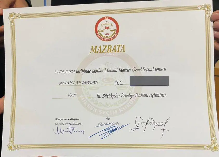Başvurunun ardından Zeydan’ın ezici oy farkıyla seçimi kazanmasına rağmen mazbatanın AKP’li Abdulahat Arvas’a verilmesine karar verildi.
