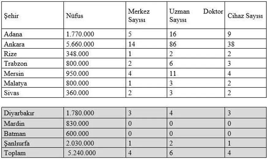 Tabip Odası, paylaştığı tabloyla da bölgedeki eşitsizliği ortaya koydu. Bölge kentlerinde diğer kentlere oranla uzman ve cihaz dağılımı şöyle:
