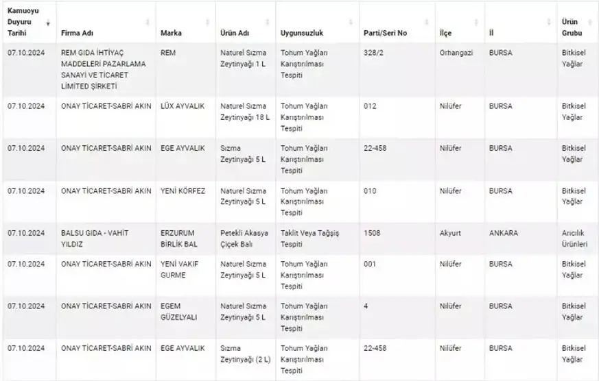 Vatandaşların sağlıklı gıdaya erişmesi için Tarım ve Orman Bakanlığı yaptığı denetimler sonrası uygunsuz olan ürünleri ifşa etmeye devam ediyor.