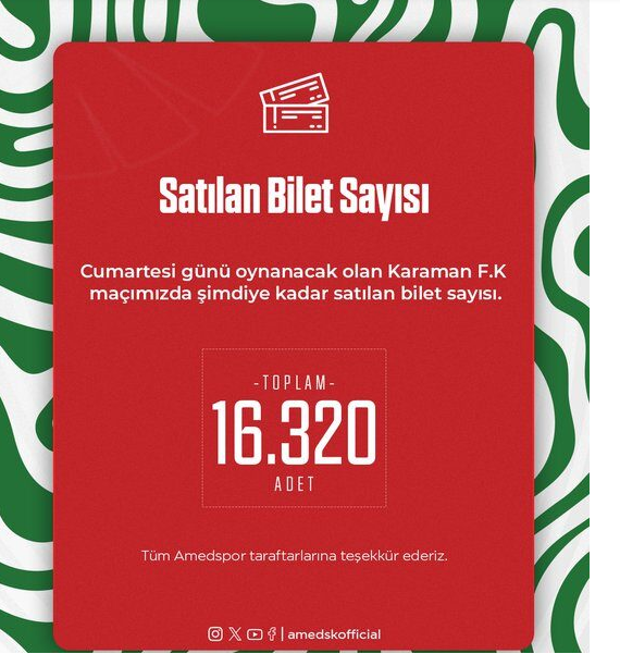 Amedspor kulübü gece yaptığı son paylaşımda bilet satışlarının 16 bin 320 adete ulaştığını duyurdu.
