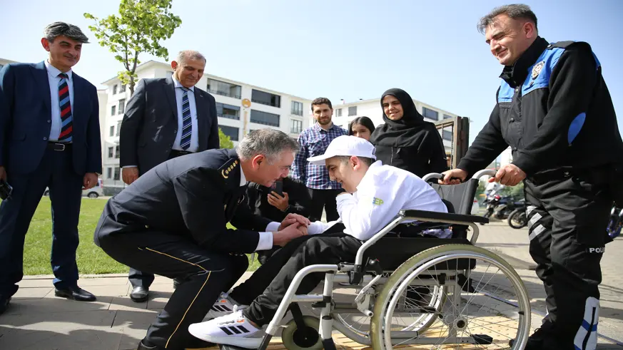 Bingöl İl Emniyet Müdürlüğü tarafından 23 Nisan Ulusal Egemenlik Çocuk Bayramı dolayısıyla bedensel engelli 3 çocuk ve gence akülü tekerlekli sandalye hediye edildi. Kent Park'ta İl Emniyet Müdürü Orhan'ın katılımıyla düzenlenen programda tekerlekli sandalyeler engelli bireylere hediye edildi.