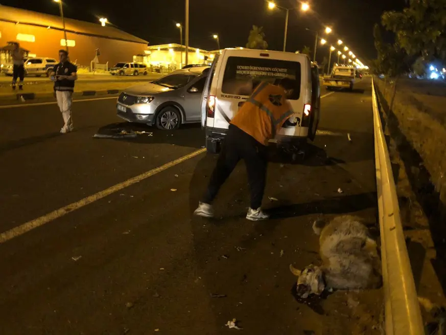 Sürüsüyle yolun karşısına geçmeye çalışan Kadri Demir (48), araçların çarpması sonucu ağır yaralandı, hayvanları telef oldu.