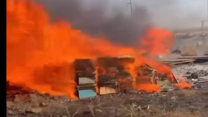 Şanlıurfa’nın Siverek ilçesinde meydana gelen arazi yangınında, yüzlerce arı kovanı içindeki arılarla birlikte yanarak kül oldu.