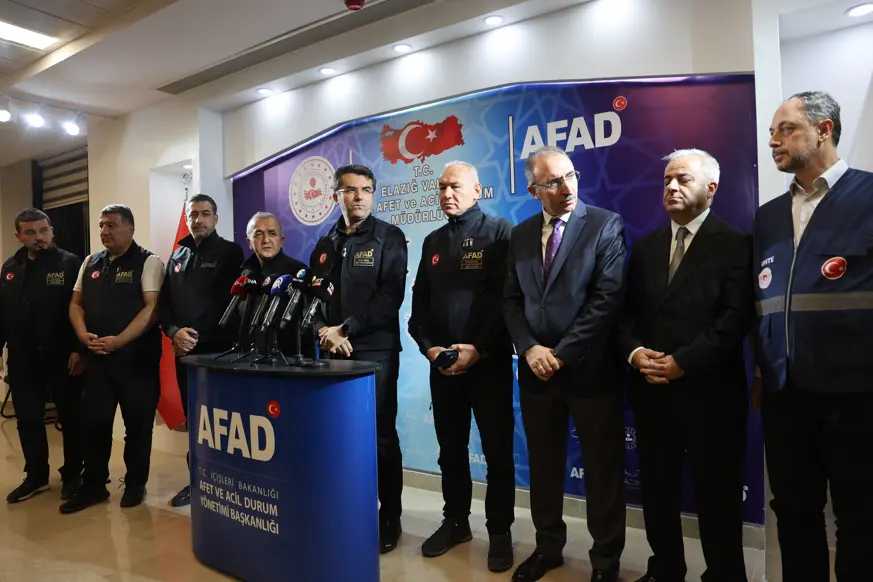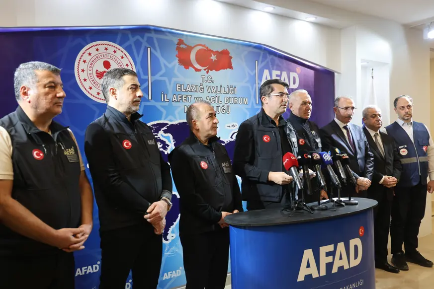 AFAD Başkanı Okay Memiş, Elazığ’da Afet Koordinasyon Merkezi'nde düzenlenen toplantı sonrası basın toplantısı düzenledi. Malatya’nın Kale ilçesi merkezli 5.9 büyüklüğündeki depremin ardından saha tarama çalışmaları sürerken depremden etkilenen Elazığ’a gelen AFAD Başkanı Oktay Memiş, Elazığ Valisi Numan Hatipoğlu, MHP Elazığ Milletvekili Semih Işkıkver, Fırat Üniversitesi Rektörü Prof. Dr. Fahrettin Göktaş ile yetkililerin katılımı ile son durum hakkında bilgiler verdi.
