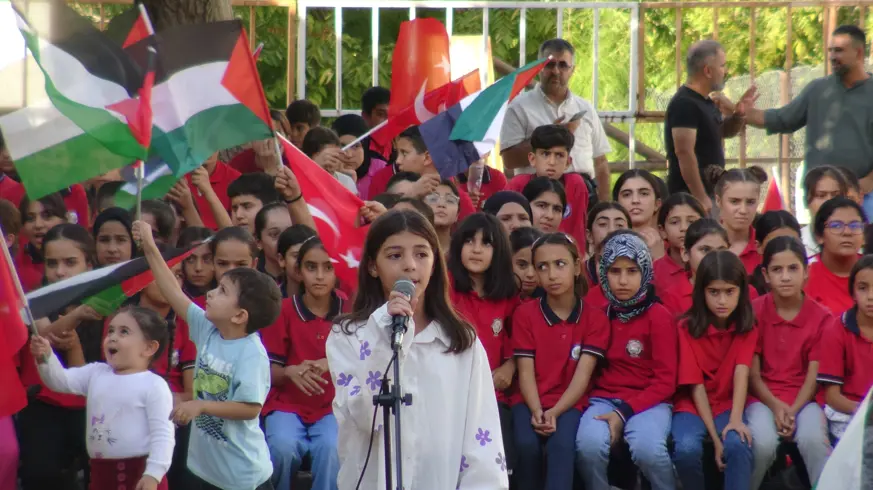 Programa katılan öğrencilerden Arif Soyvural, "İsrail diyor ki Filistin'den sonra Türkiye gelecekmiş geldikleri gibi geri gidecekler" dedi.