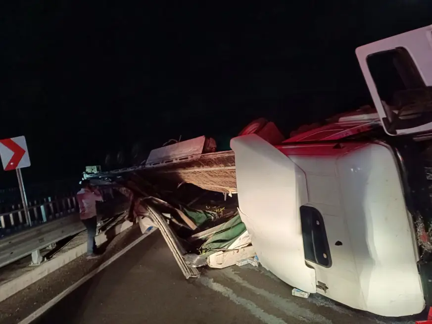 Alınan bilgilere göre kaza, Genç-Diyarbakır yolundaki köprüde meydana geldi. Sürücüsü öğrenilemeyen 81 EZ 132 plakalı tır, kontrolden çıkarak bariyerlere çarptı ardından yan yattı.
