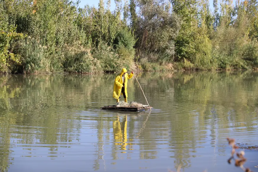 Baba mesleği balıkçılığı sürdüren Malkoç, "kelek" üzerinde avladığı balıkları hem satıyor hem de dostlarıyla paylaşıyor.