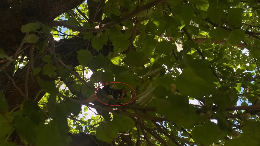Çekirge, cep telefonu ile görüntülendiği sırada ağaç dalları arasında gözden kayboldu.