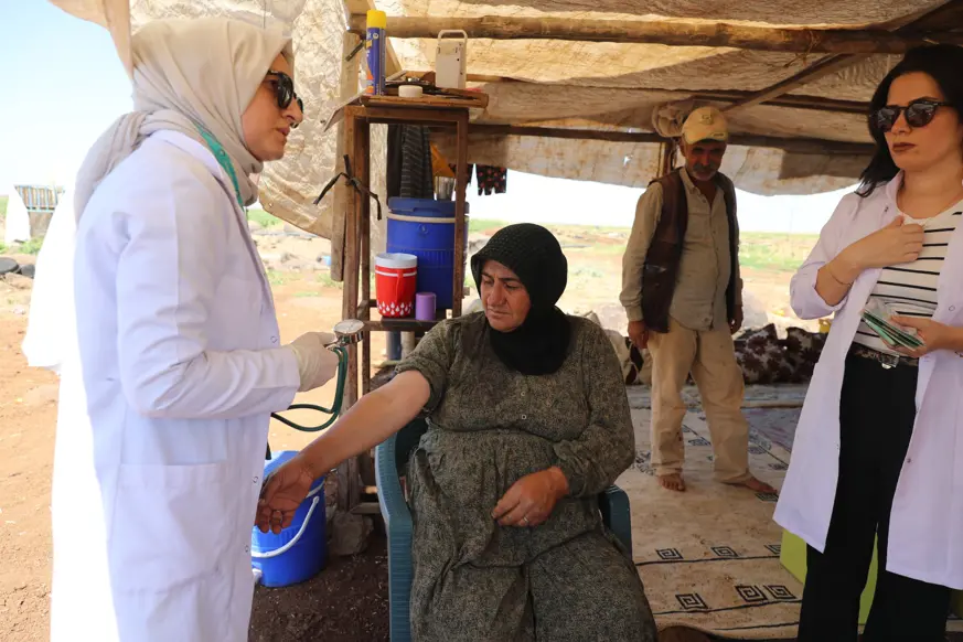 Kaldıkları çadırda ya da çalıştıkları soğan, mısır, pamuk ve karpuz tarlalarında, hayvan otlattıkları yaylada ulaştıkları tarım işçileri ve göçerlerin sağlık sorunlarını dinleyen ekipler, aile bireylerinin tansiyon ve şeker ölçümlerini yapıyor, kadınların gebelik ve bebeklerin aşı sürecini takip ediyor.