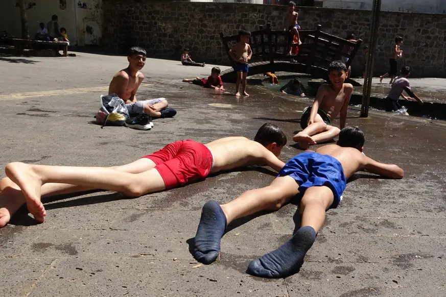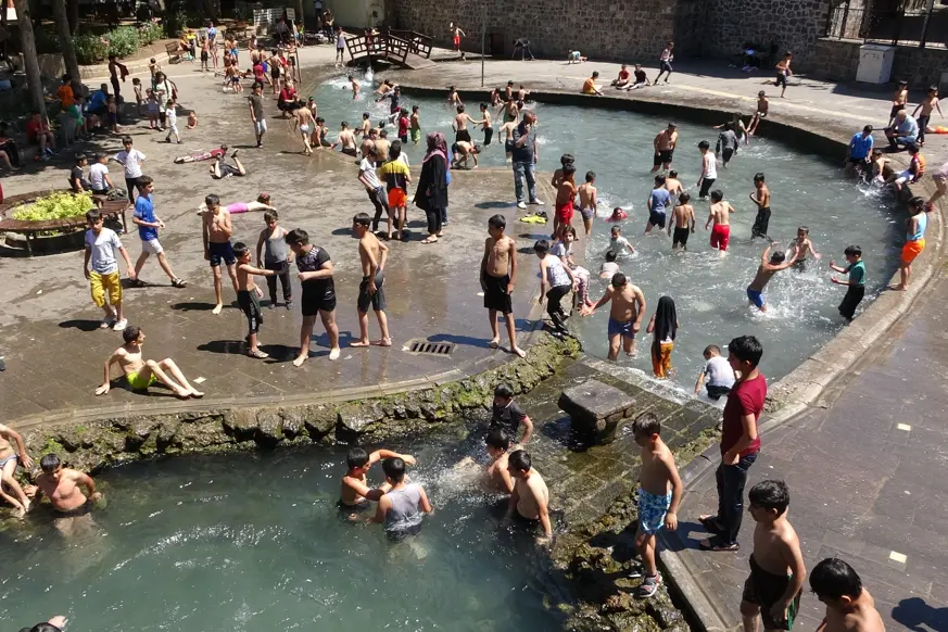 Diyarbakır’da sıcaklığın 40 dereceyi bulmasıyla çocuklar Anzele’ye akın etti