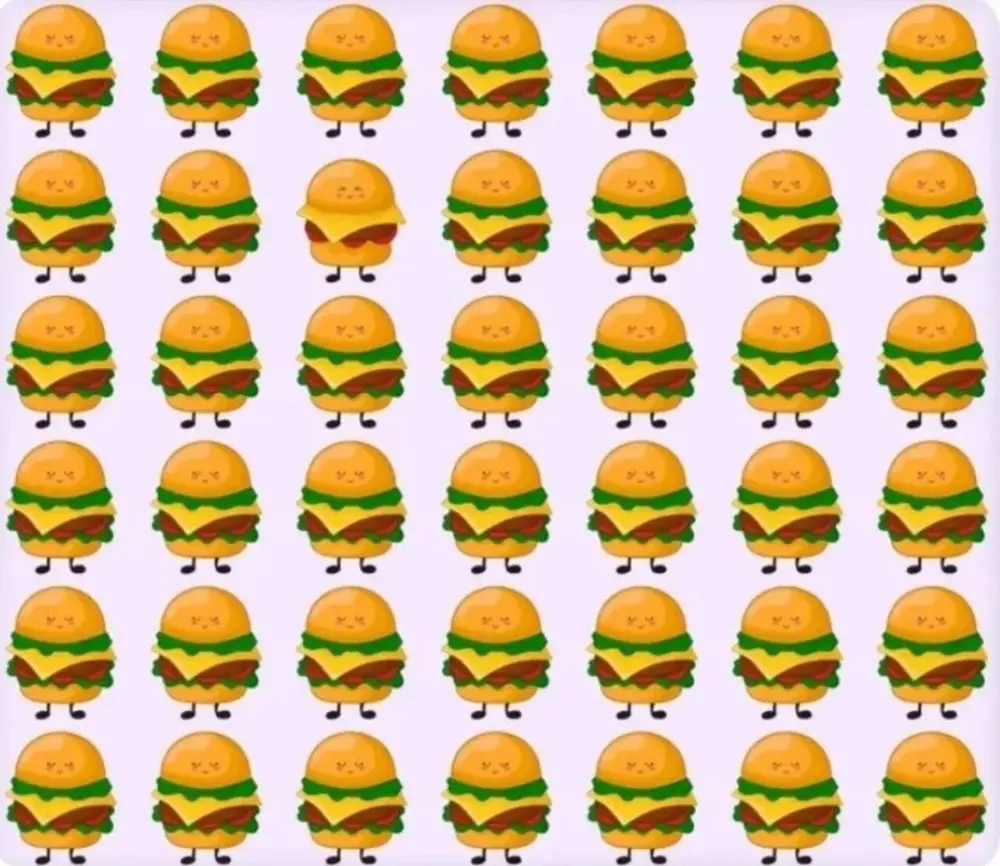 IQ’su yüksek kişiler resimlerde farklı hamburgerler bulabilirler. Resimde yalnızca bir tür burger gösterilmektedir. IQ’su yüksek bir kişi 5 saniyeden kısa sürede dört farklı hamburger bulabilir.
