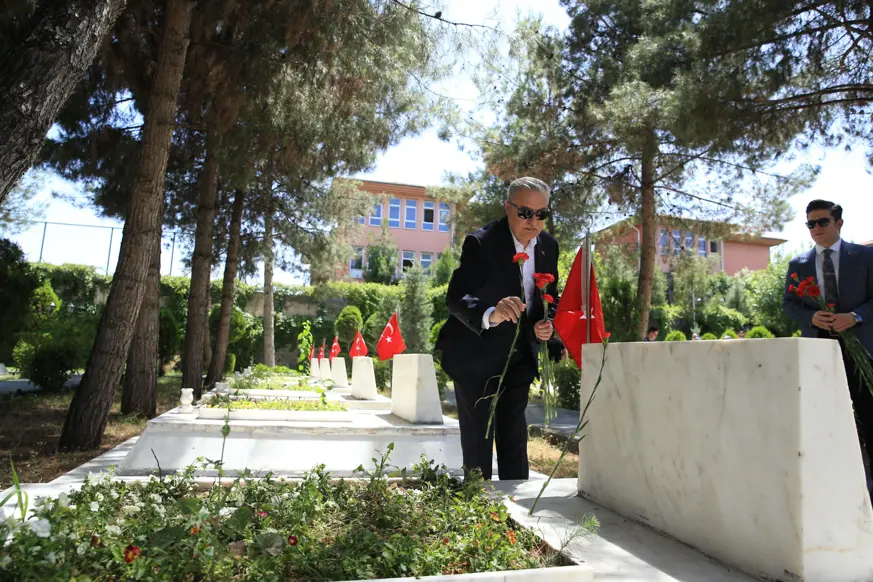 Diyarbakır Valisi Ali İhsan Su, merkez Yenişehir ilçesinde bulunan Hava Şehitliğini ziyaret ederek, şehitlerin kabillerine karanfil bıraktı.