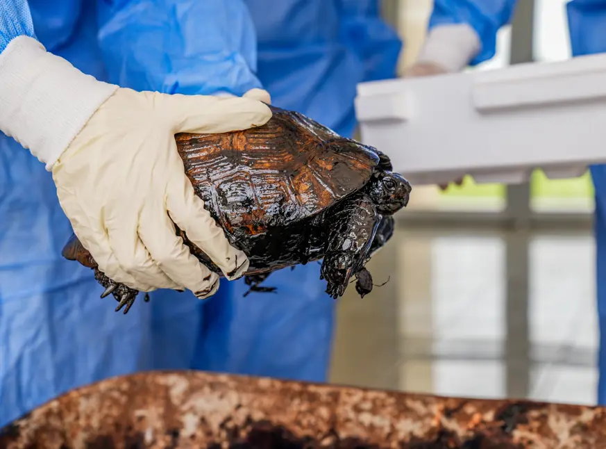 Ekiplerce, Dicle Yaban Hayvanı Kurtarma ve Rehabilitasyon Merkezi'ne getirilen kaplumbağaların üzerindeki zift, DKMP Diyarbakır Şube Müdürlüğünde yaban hayvanları üzerine çalışma yürüten veteriner hekim Kasım Ertürk ve Emre Yalçın tarafından temizlendi.